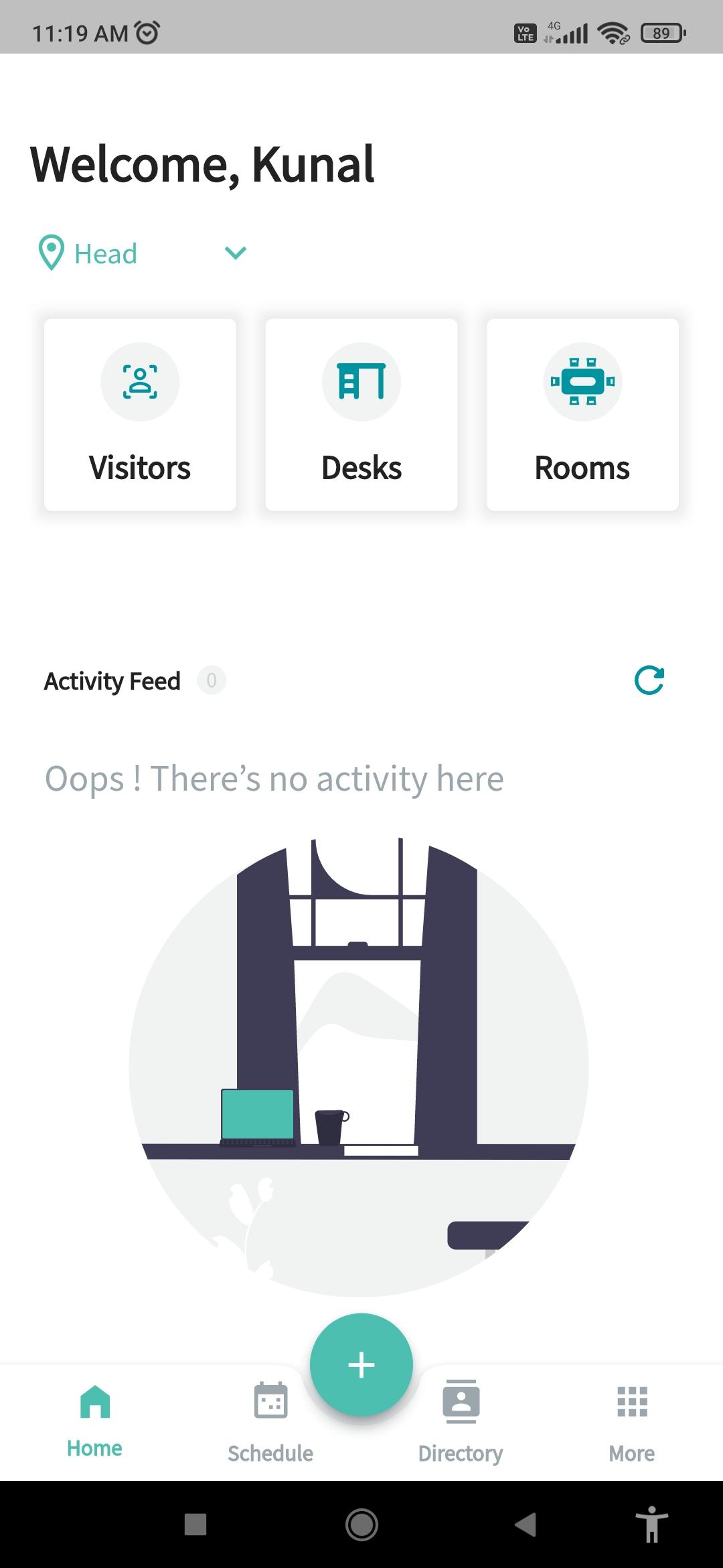 - Click on the Desks icon at the top of the home screen